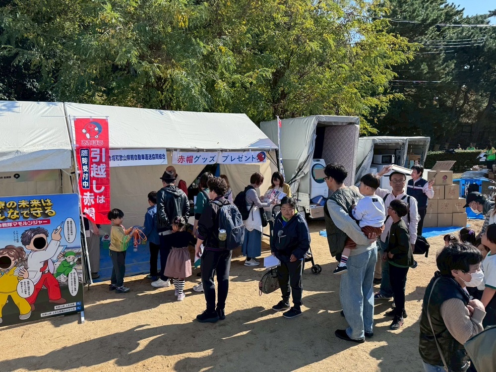 当日は、赤帽グッズの配布や「あかぼうくん」着ぐるみの登場、引っ越しデモンストレーションなどを実施し、赤帽ブランドのPR活動を行いました。