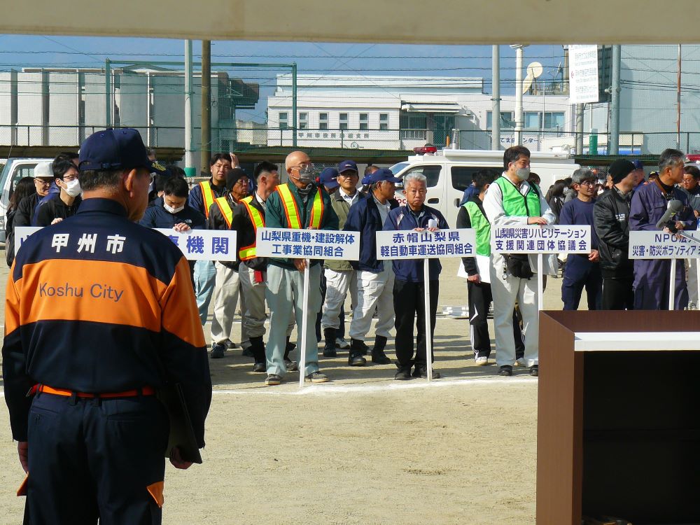 山梨県災害対策基本法、防災基本条例、地域防災計画及び甲州市地域防災計画に基づき、関係機関と地域住民が相互に連携して、各種訓練を総合的に実施されました。