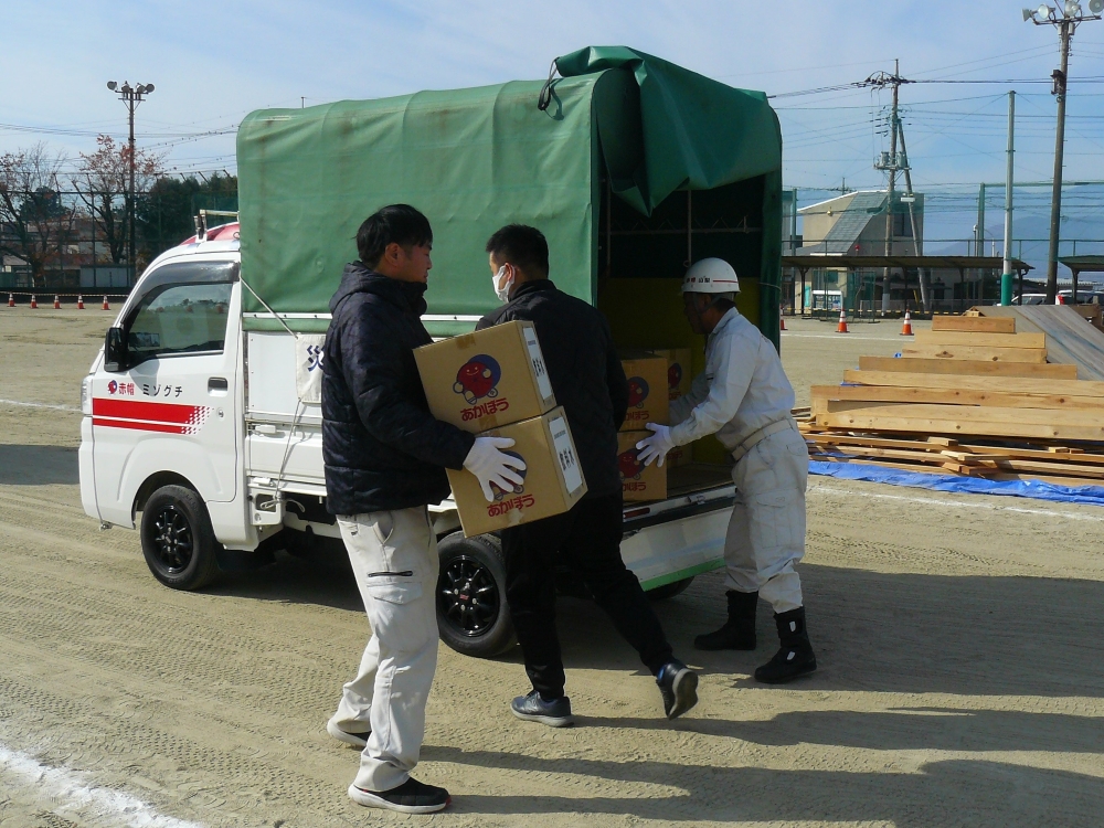 赤帽としては赤帽車両2台が参加し、地域ボランティアの方々と共に物資を積み込み、各避難場所へ配送することを想定した訓練を行いました。